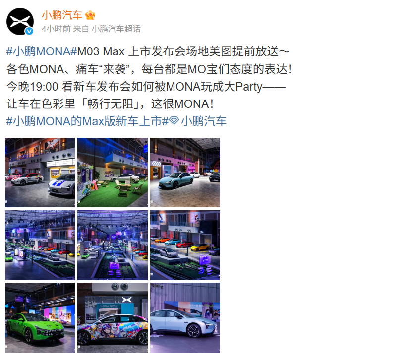 此外,小鹏MONA M03 Max将于今晚19点举办的新品发布会上正式上市。