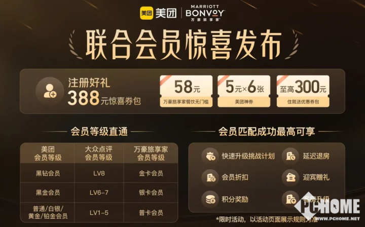 会员权益方面,美团黑钻或黑金会员,可以享受会员价订房,更有延迟退房与升级房型福利。美团普通会员则享受,万豪刷2晚,万豪会员卡就能直升银卡,金卡刷8晚直升白金卡。