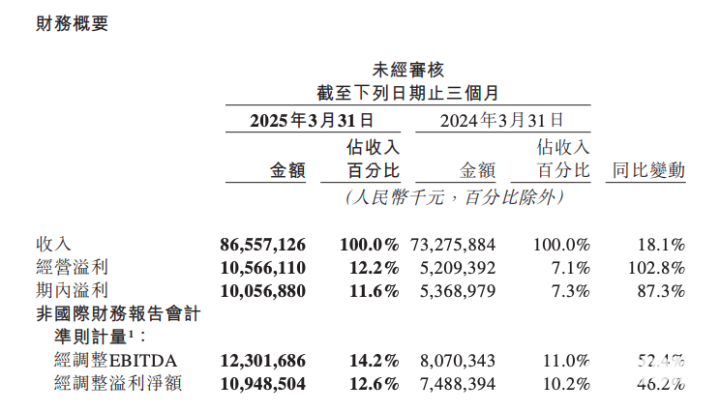 2025年5月26日,美团披露2025年Q1财报,营收865.6亿元,同比增长18.1%;净经调整EBITDA为123.02亿元,同比增长52.4%;调整后净利润109.49亿元,同比增长46.2%。