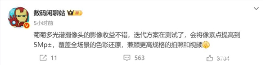 5月30日消息,据博主爆料,曾在华为Mate 70首发的红枫影像,迭代方案已在测试之中,像素数量由原来的150万提升到了500万,覆盖全场景的色彩还原,兼顾更高规格的拍照和视频。