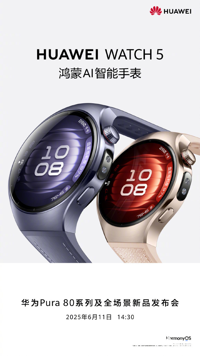 华为终端正式官宣,首款鸿蒙AI手表—— 华为WATCH 5将于6月11日震撼发布。这款手表凭借端、软、云三大技术底座协同的创新技术架构,全面重塑华为可穿戴设备体验,引领华为穿戴率先踏入AI时代。