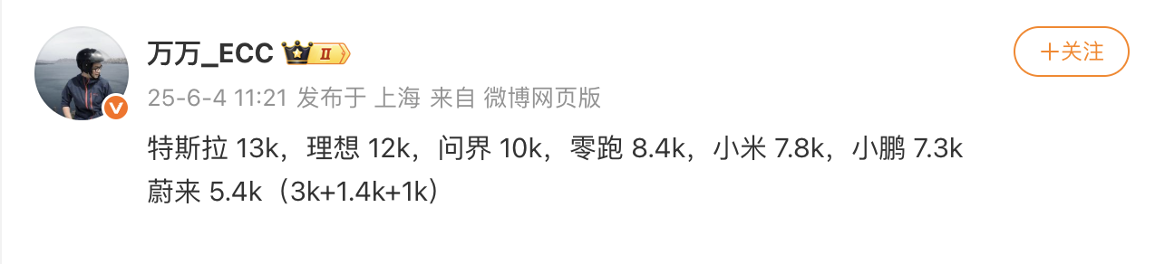 2025年6月4日,最新一周中国新能源汽车销量数据公布,引发行业关注。特斯拉以1.3万辆的成绩暂居榜首,但理想汽车以1.2万辆紧随其后,展现出强劲增长势头,仅差1000辆便有望实现超越。