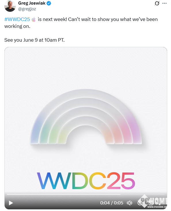 值得注意的是,预告WWDC 2025时,苹果公司市场营销高级副总裁,格雷格Greg Joswiak在社交媒体发布短片,视频中,苹果logo和图形均呈现“玻璃材质”,并闪烁着彩虹光彩。结合诸多迹象来看,今年苹果操作系统的设计语言或将迎来巨变。