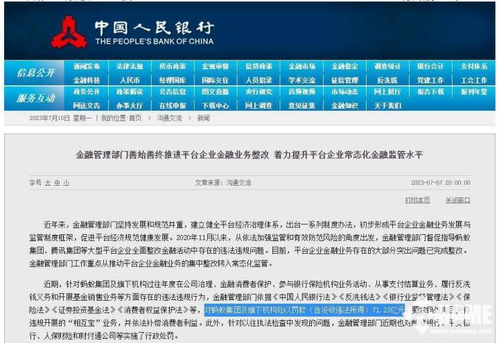 随后的整顿愈发深入,蚂蚁集团被要求整改成为“金融控股公司”,其消费信贷产品“花呗”“借呗”被纳入央行征信,金融业务须接受更严格的风控监管。2023年7月,监管部门对蚂蚁集团处以71.23亿元罚款,标志着整改阶段的结束,也彰显出有关部门对金融科技平台的全面规制态势。