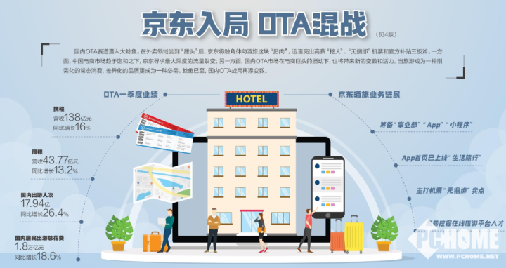 据了解,京东在2014年就已经推出了“京东旅行”频道,京东主打机票“无捆绑”的卖点,予以多家酒店官方补贴,希望以“高频打低频”获取新增长点。有业内人士表示,京东的加入能够搅动国内OTA战局,带来新的变数和活力。