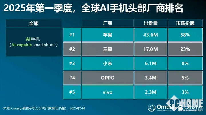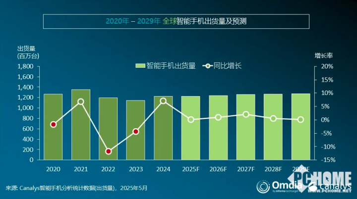 Canalys数据显示,2025年Q1,全球智能手机市场同比增长0.2%,出货量预计为12.2亿台,同比上升0.1%。高端智能手机市场需求韧性强,一季度全球600美元以上价位段出货量同比增长12%。AI手机日益成熟,正成为推动高端市场成长的重要力量。