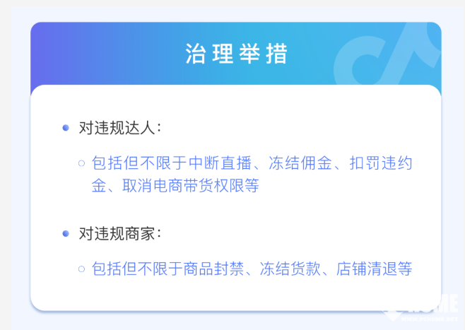 6月11日消息,抖音电商发布公告,宣布将全面升级治理措施,严打直播间违规营销,多个店铺被取消电商带货权限,抖音电商今后还会持续进行严格排查和治理。