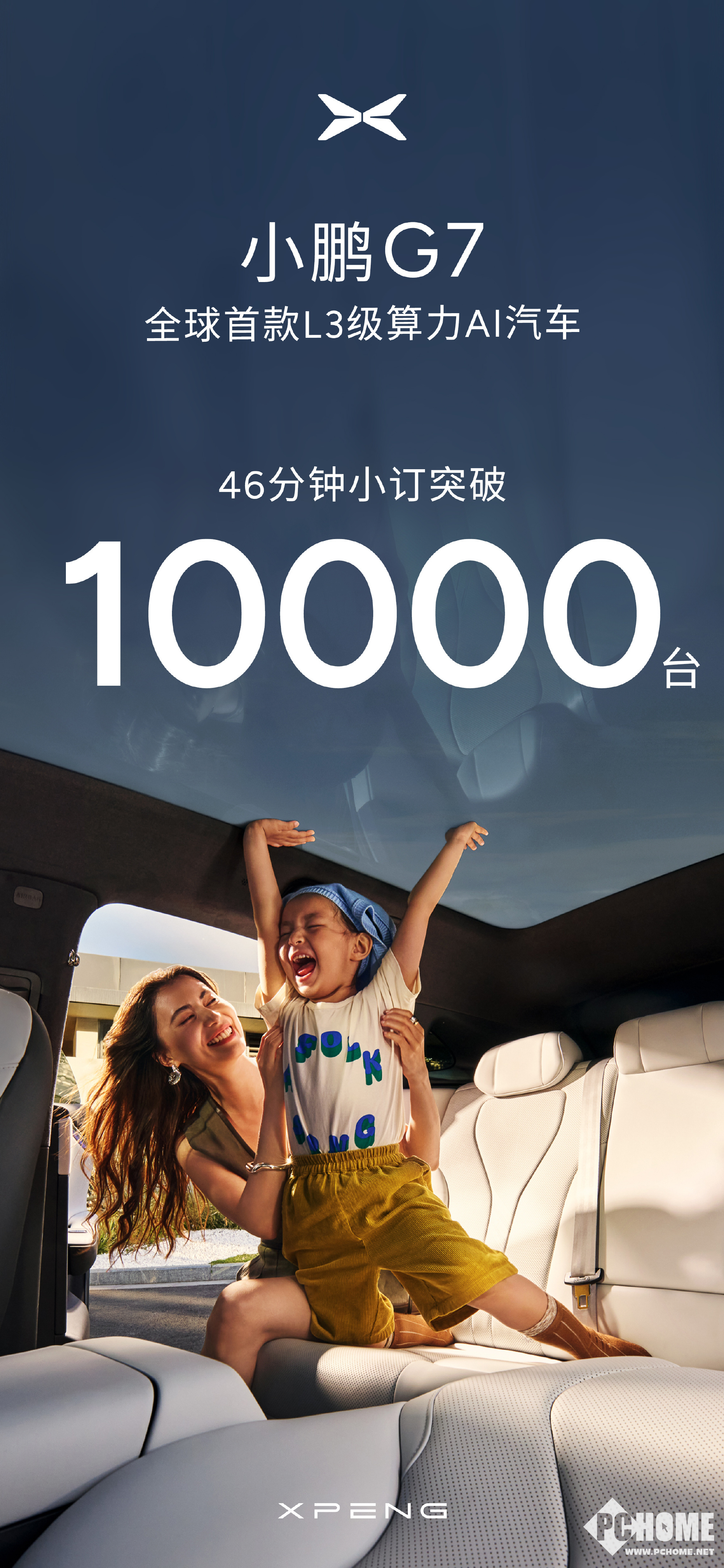 小鹏汽车官微发布消息称,小鹏G7 46分钟小订突破10000台。据悉,小鹏G7预售价为23.58万元,全国展车现已陆续到店。