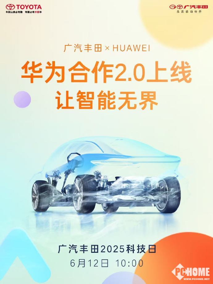 2025年6月12日,广汽丰田官微发布消息称,将于6月12日举办科技日,与华为深化合作2.0上线,从车机点到点合作,升级到全域面到面合作。