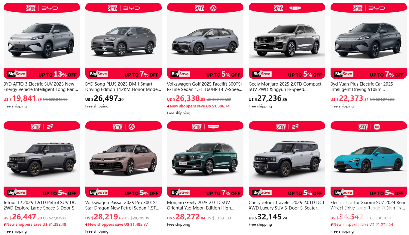 近日,阿里巴巴旗下跨境电商平台全球速卖通AliExpress,在中东地区率先开通线上卖车业务,包括比亚迪、吉利、小米 SU7、小鹏G9、蔚来ET9等热门车型均上架销售,不少中国新能源汽车都已加入速卖通百亿补贴品牌出海。