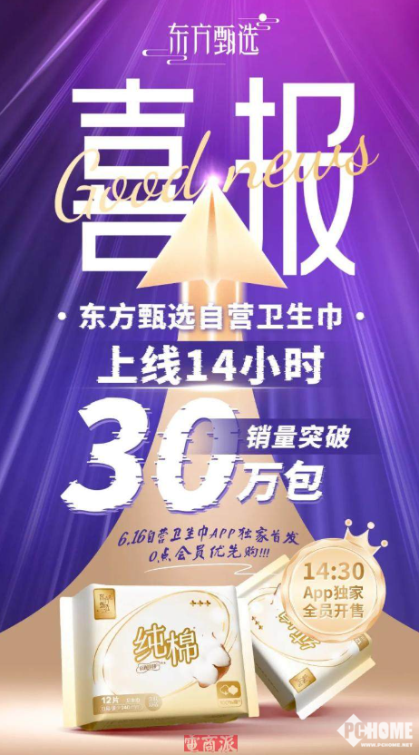 6月16日消息,东方甄选举办新品发布会,宣布上线首款自营卫生巾产品。当天凌晨0点,该产品在东方甄选App率先面向会员开售,开售仅10分钟,卫生巾就热卖超4000单,16日中午,东方甄选卫生巾在App的销量已突破30万包。