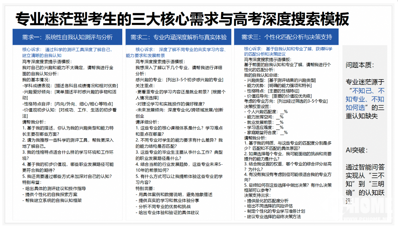 《指南》以夸克为研究样本,系统分析AI的辅助能力与决策表现。报告中,清华大学团队重点分析了志愿填报中的常见误区与AI解决方案。其中,“唯分数论,忽视位次”、“唯热门论,忽视发展性”、“忽视地域因素影响”等,都可以通过AI功能有效规避和辅助决策。