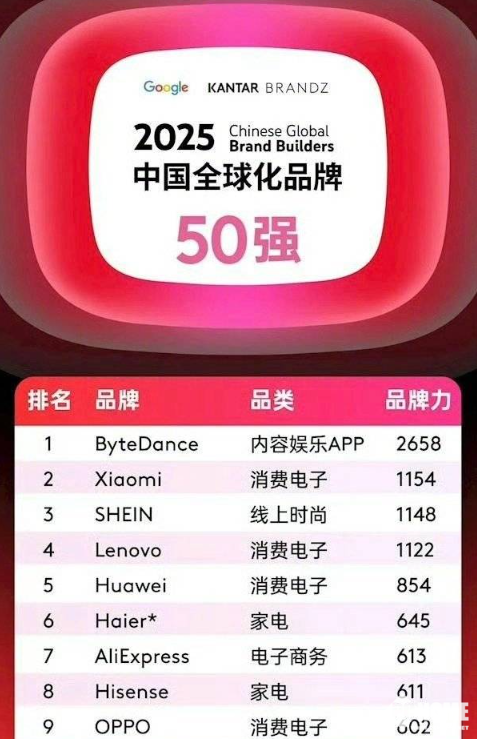 6月24日消息,凯度携手Google发布了《2025凯度BrandZ中国全球化品牌》,2025年度中国全球化品牌50强出炉。速卖通AliExpress是电商领域唯一上榜平台。