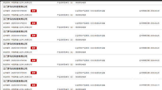 据凤凰网科技,安普瑞斯为行业头部电池电芯供应商,是众多业内头部品牌的合作供应商。据国家市场监督管理总局官网显示,安普瑞斯名下70多张电池与电芯3C认证已被标注为暂停或撤销,影响到罗马仕、安克、小米、绿联科技、倍思科技等,众多品牌的移动电源3C认证也被暂停或撤销。