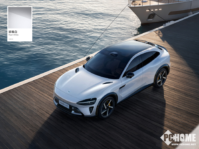 珍珠白配色的YU7汽车外观亮眼,珍珠白车漆灵感汲取天然海水珍珠光晕,在不同光线条件下,能呈现出独特的光泽变化。 从发布的图片看,YU7停于滨海木质平台,车身线条流畅,融合轿跑与 SUV 风格。车顶的黑色设计与珍珠白车身形成对比,搭配大尺寸轮毂,运动感十足。背景中的海水、帆船,更衬出珍珠白配色的优雅质感。