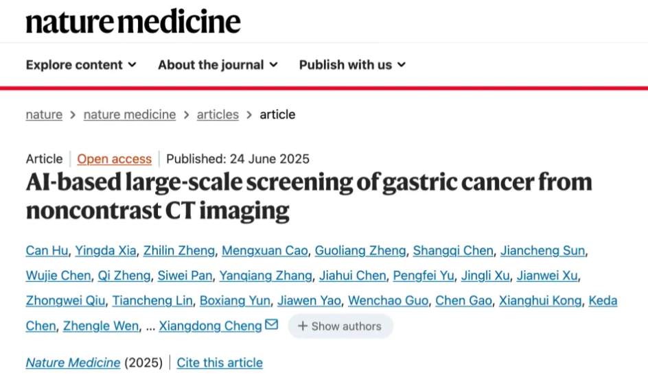 论文主要通讯作者、浙江省肿瘤医院党委书记、中国抗癌协会副理事长程向东表示:“该AI模型是重大的医学突破,让基于影像的胃癌筛查首次成为可能。毕竟,再高精尖的根治手术,效果都比不上筛查与早诊早治。浙肿和达摩院已在全国多个胃癌高发区部署AI模型,接下来计划向国内外进一步推广。”
