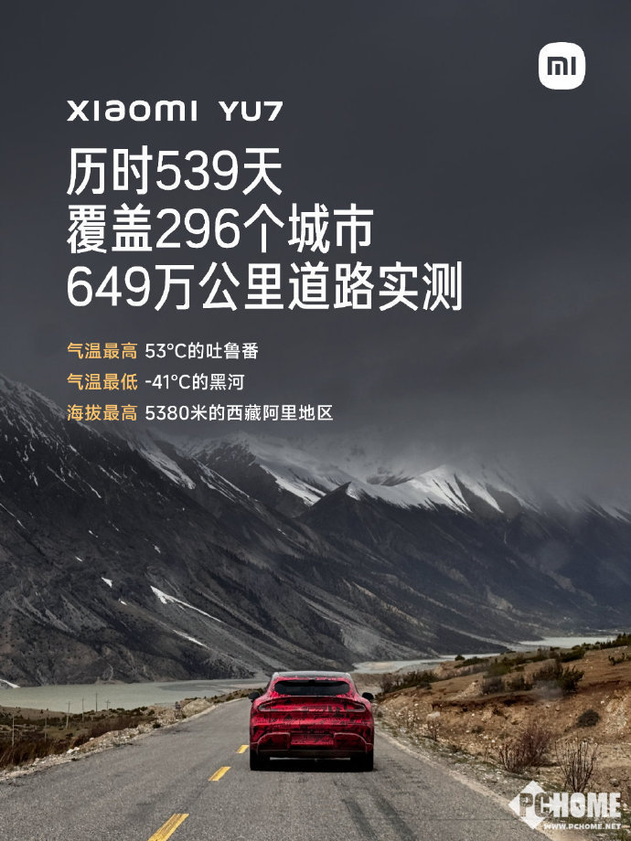 6月26日消息,小米创办人雷军在社交平台发文,正式公布小米YU7上市前的整车路测进展。据其透露,自2024年初启动测试以来,小米YU7已在全国范围内展开为期539天的高强度道路实测,覆盖296个城市,总测试里程达649万公里,充分验证了车辆在极端气候与复杂路况下的综合稳定性与可靠性。