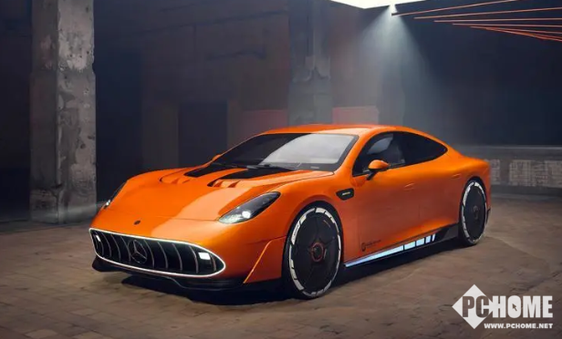 车内风格更接近一台高端赛车模拟器,中控配备10.25英寸数字仪表、14英寸信息娱乐屏幕以及来自AMG One的赛车方向盘。中控台中央嵌有橙色发光管道,呼应高压电缆的视觉效果。座椅和车顶皆为裸露碳纤维材质,地板覆盖了 100% 回收材料。