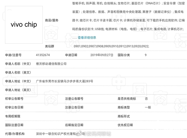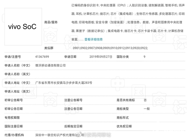 其实早在去年5月,就曾网友曝光了vivo申请的两款芯片商标,分别是“vivo SOC”和“vivo chip”,并且这两个商标申请日期是2019年9月份,这就意味着vivo早在2019年之前就开始了自研芯片的规划。