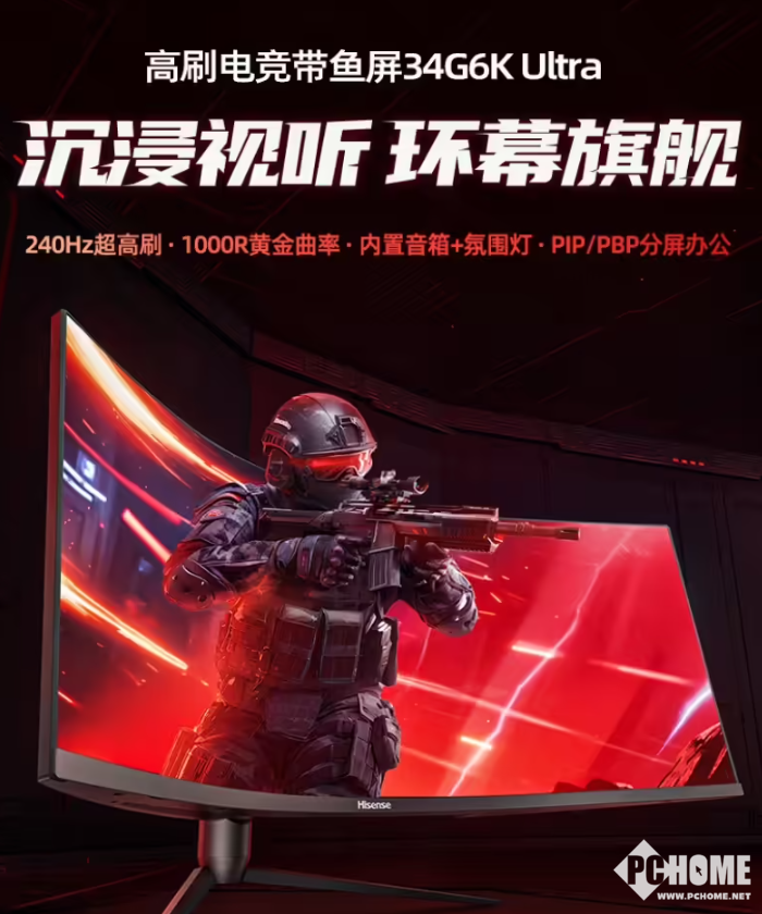 该机拥有240Hz超高刷,1000R黄金率,内置音箱+氛围灯,还有PIP/PBP分屏办公。采用了更符合玩家调节习惯的OSD五向摇杆按键,更方便快速切换到想要定位的菜单选项。