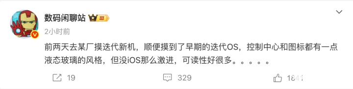 值得注意的是,由于“液态玻璃”视觉风格过于激进,已有国产安卓厂商表示不会追随苹果的步伐。此前,OPPO ColorOS设计总监陈希在微博上回应称:“iOS 26这么一折腾,让‘半身入土’的视觉设计师终于有活干了,多苟一年是一年。”尽管表达出对设计趋势再度“复苏”的乐观情绪,但他明确表示:“坏消息是:不跟进。”