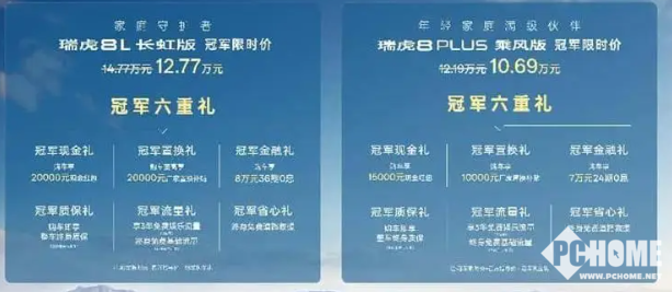 7月1日消息,近日,奇瑞瑞虎8 PLUS乘风版与瑞虎8L长虹版正式上市。瑞虎8 PLUS乘风版冠军限时价为10.69万元,瑞虎8L长虹版冠军限时价为12.77万元。