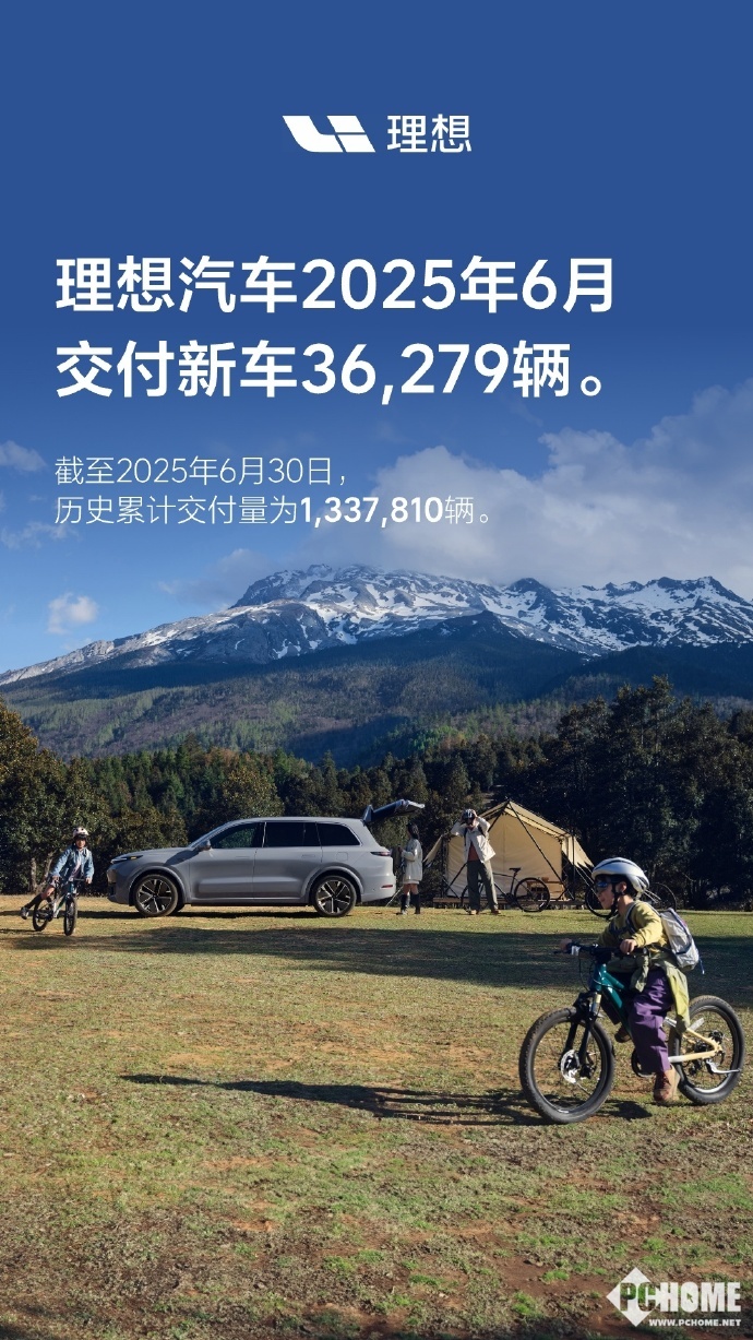 7月1日,理想汽车发布6月销量报告,共计交付新车36279辆。第二季度共交付111,074辆。截至2025年6月30日,理想汽车历史累计交付量为1,337,810辆。