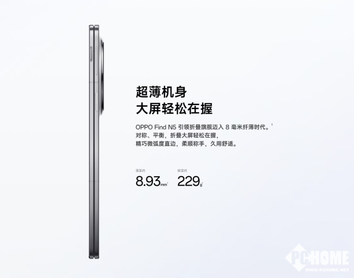 值得一提的是在OPPO的官网上显示的OPPO Find N5折叠后厚度为8.93mm。周意保发布的实测数据比官网给的数据还要更薄。为了做薄,OPPO Find N5实现了多项技术创新,比如手机主屏支撑板厚度仅为0.1毫米,无线充电线圈为0.18毫米,SIM卡座更是薄至1.25毫米,这些都创造了行业最薄设计。