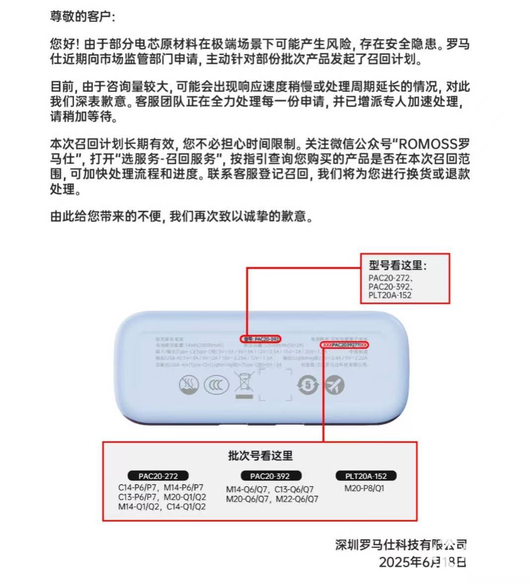罗马仕方面回应称,目前公司正在安排整改,先梳理内部,全部精力都聚焦产业链自检,为新品做准备。