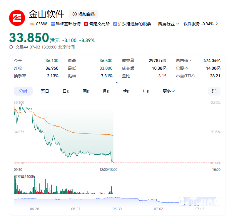 PChome了解到,金山软件股价现下跌超7%。其核心原因在于游戏业务承压与云服务竞争加剧。金山软件旗下核心游戏《剑侠情缘》系列二季度流水并未达到企业内部预期,暑期档新游《尘白禁区》表现也未达市场预测。