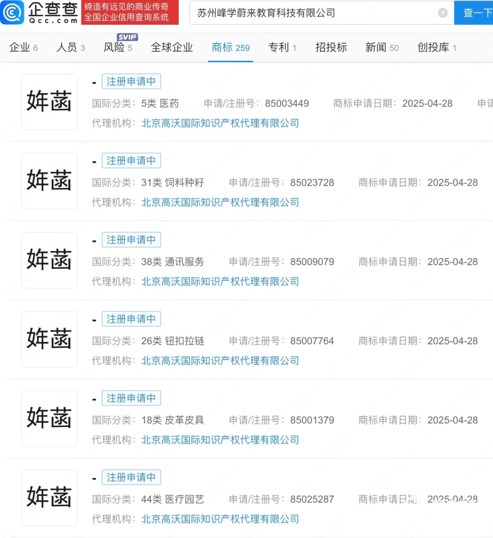 同时,张雪峰公司注册近40枚“姩菡”商标(女儿名字),其中广泛覆盖于教育、娱乐等领域,被视作家族财富代际转移的信号,种种举动严重遭受到了公众的信任危机, 被视作家族财富代际转移但信号。