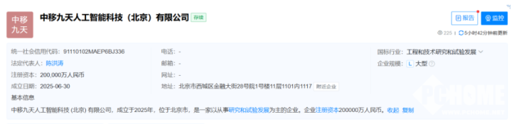 7月3日消息,近日,中国移动成立了一家人工领域的新公司中移九天人工智能科技(北京)有限公司。