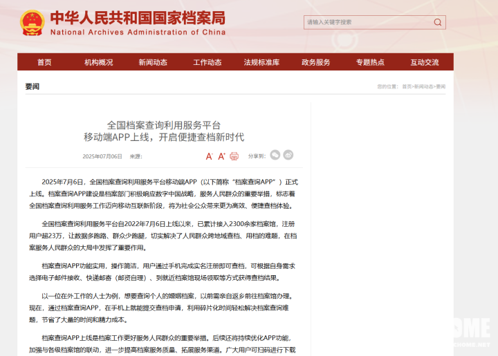 据了解,该平台基于2022年7月上线的“全国档案查询利用服务平台”(Web端)建设,是其功能的移动化扩展。经过三年发展,平台已接入全国省、市、县三级超过2300家综合档案馆,注册用户超23万,累计处理查档需求超百万次。