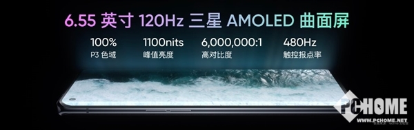 真我GT大师系列配备了三星6.5英寸AMOLED屏幕,支持120Hz刷新率、三档自适应调节、480Hz触控报点率,最高亮度1100nits,并且采用COP封装工艺,拥有极窄的下巴,同时还通过了HDR 10+的认证,屏幕素质非常出色。