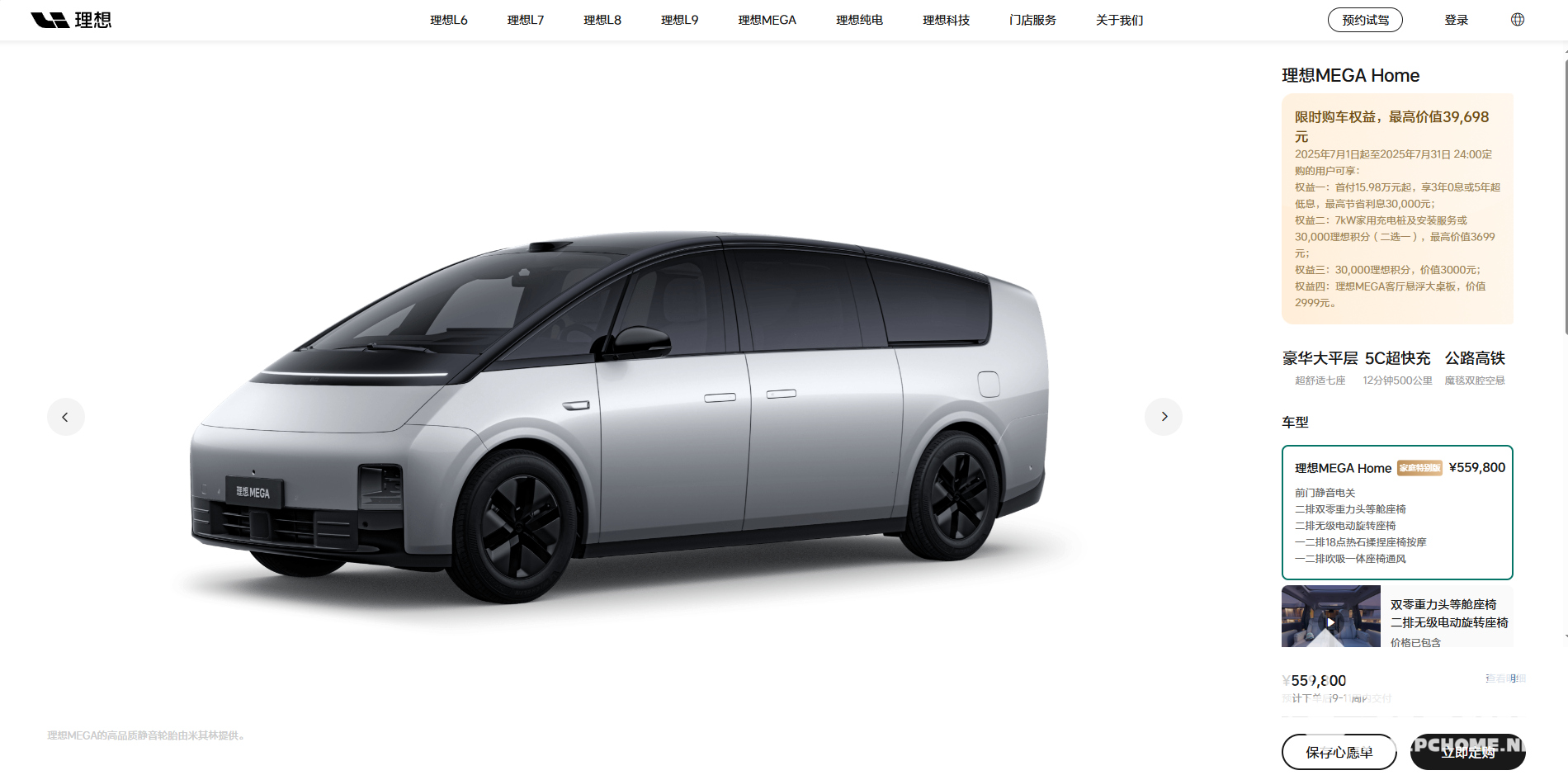 据了解,今年4月,理想MEGA Home家庭特别版发布,售价55.98万元。该车配备二排旋转零重力座椅,支持无级电动旋转和零重力功能,全车配备电动门。新车搭载定制ATL全天候激光雷达,搭载英伟达Thor-U芯片,拥有700TOPS的算力。同时理想汽车CEO李想曾表示,理想MEGA会不断迭代,坚信它一定会成为最好的家庭MPV,没有之一。