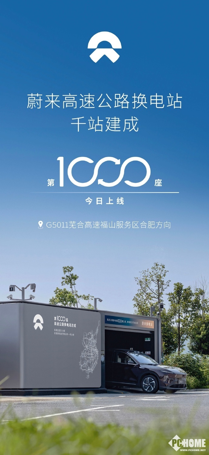 7月9日,蔚来官方今日发文宣布,第1,000座高速公路换电站于G5011芜合高速福山服务区正式上线,连通全国550城。