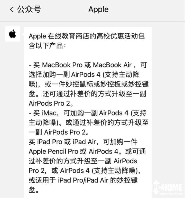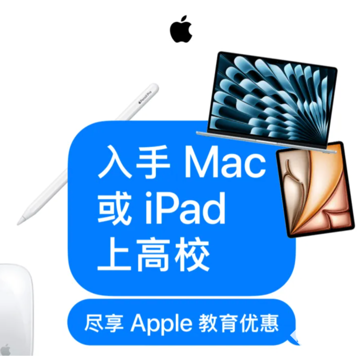 2025年7月10日,苹果中国官宣,开启限时教育优惠活动,7月10日起至9月30日,购买符合条件的Mac或iPad并搭配一件促销产品时,可享促销优惠金额。