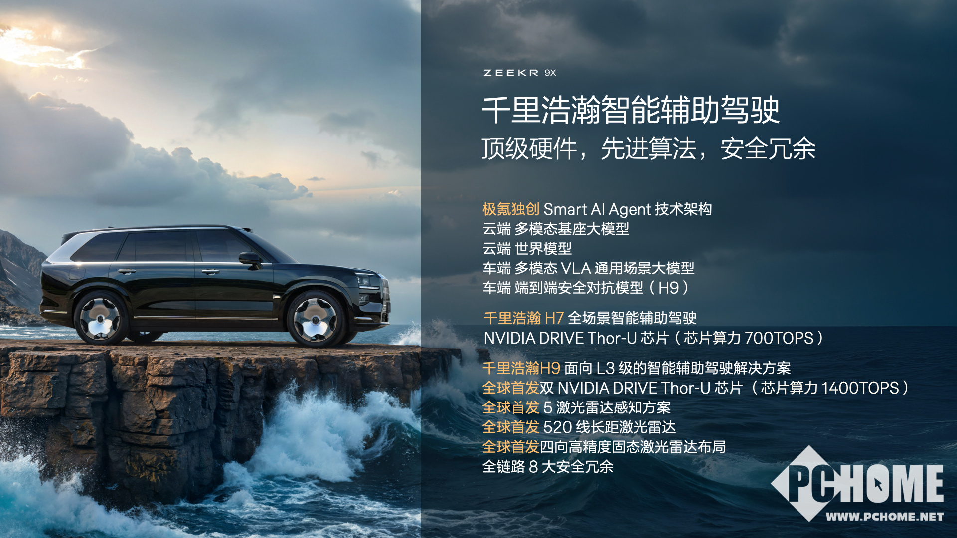 智能化方面,极氪9X首发搭载“千里浩瀚H9”平台,融合5颗激光雷达与双NVIDIA DRIVE Thor-U芯片,具备L3级自动驾驶能力,代表极氪在高阶智能辅助驾驶领域迈出关键一步。