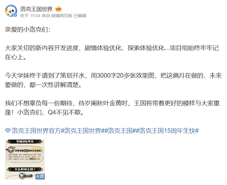 《洛克王国:世界》项目组宣布游戏计划于2025年第四季度上线。