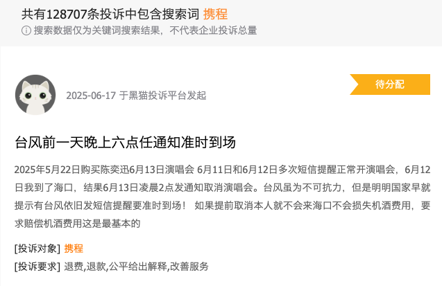 PChome了解到,携程近年来争议不断,在消费者服务平台黑猫投诉以“携程”为关键词检索,可以发现约13万条投诉。诸多消费者控诉称,携程存在捆绑销售、大数据杀熟等问题。