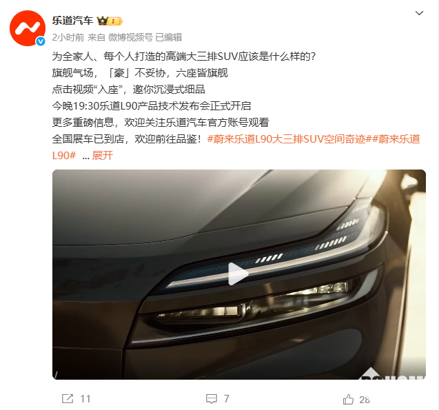 7月10日,据乐道官方称,备受瞩目的蔚来乐道L90大三排SUV展车已全面抵达全国门店,正式开启座舱品鉴活动。与此同时,蔚来将于今晚举办乐道L90产品技术发布会,届时将全方位展示这款旗舰车型的技术亮点与创新设计。