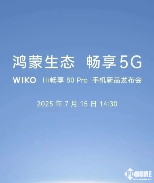 7月10日消息,WIKO将于7月15日14:30举行Hi畅享80 Pro手机新品发布会,主题为“鸿蒙生态,畅享5G”。