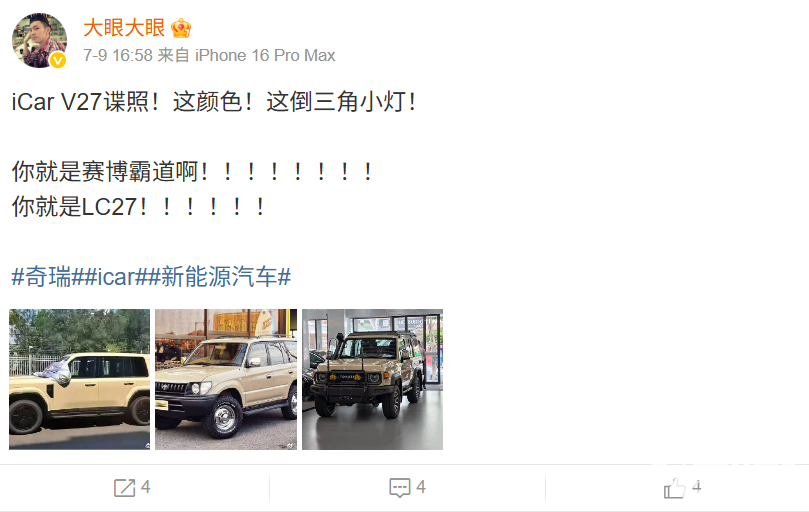 根据智米科技创始人兼CEO、iCAR品牌事业部总经理苏峻此前的介绍,这款车曾被网友戏称为“国民版大G”“新能源陆巡”。
