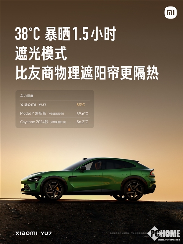 小米汽车官方回复:小米YU7防晒隔热性能非常强,不用额外贴膜。