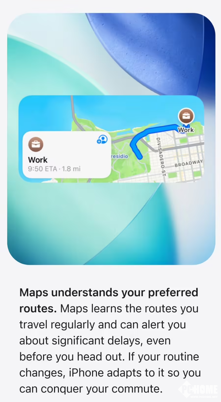 区别于传统导航应用,苹果此次升级主打三大智能特性: