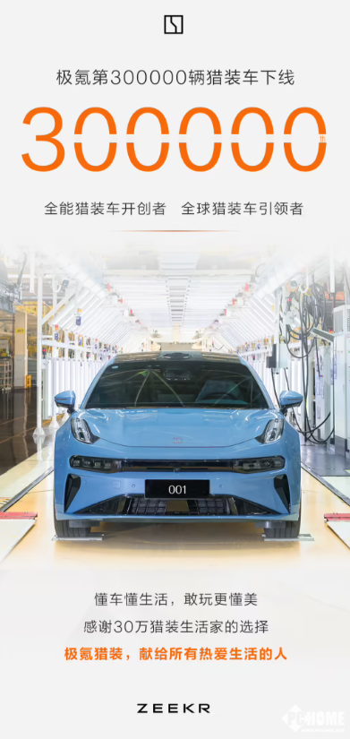 7月14日消息,极氪官方宣布第30万辆猎装车正式下线,车型为极氪001。