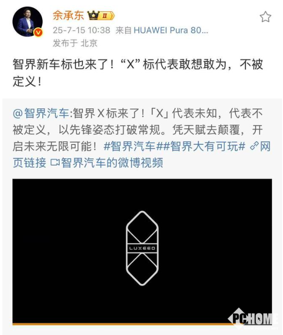 7月15日消息,鸿蒙智行旗下智界汽车品牌今日正式发布全新车标设计。以“X”为核心元素的动态图形标识取代原有字母标。“X”代表未知,代表不被定义,以先锋姿态打破常规。凭天赋去颠覆,开启未来无限可能!”