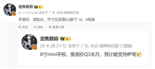 7月15日消息,数码博主@定焦数码发文透露,华为计划在第三季度末推出一款小尺寸平板产品,预计发布时间将在9月。这款设备采用8.8英寸屏幕,16:9屏幕比例,该平板将支持蜂窝网络连接。