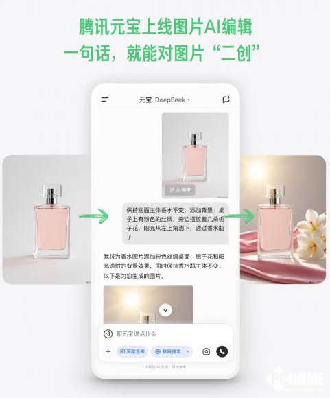 据了解,该功能已在元宝手机端、电脑版和网页版同步开放,手机端还新增了“AI编辑”入口,用户只需输入一句话,就能让元宝自动帮你P图、换背景、加光效,甚至生成风格化大片。元宝还支持“图生图”:即在已有图片基础上,进一步编辑、重绘、风格化表达,生成符合用户需求、风格多样的图片。