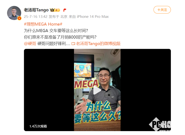 7月17日消息,昨日,理想汽车高管、理想汽车产品线负责人@老汤哥Tango 发视频回应了MEGA交车时间久的问题。他表示,“MEGA目前订车的话,大家可能都要等两个月,甚至更长的时间。”